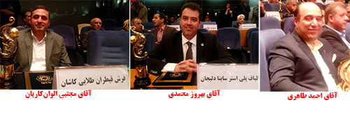 شرکتهای الیاف ساینا دلیجان ( به مدیریت آقای بهروز محمدی) ، نوین بافان پرنگ( به مدیریت آقای احمد طاهری) و فرش قیطران طلایی کاشان (به مدیریت آقای مجتبی الوانکاریان) در بخش صنایع نساجی و پوشاک بهعنوان صادرکنندگان نمونه انتخاب شدند و لوح تقدیر را از دستان معاون اول رئیس جمهور دریافت کردند.